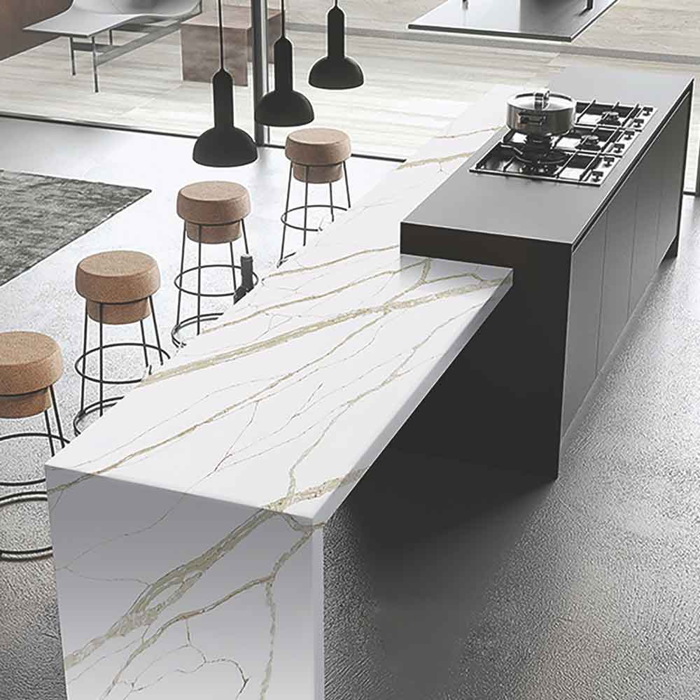Choose from regular slabs, super-jumbo slabs in 2CM and 3CM thicknesses or explore our prefabricated countertop options and expansive kitchen island selections. Whether you need material for compact spaces or large installations, our diverse range of sizes caters to projects of all scales.