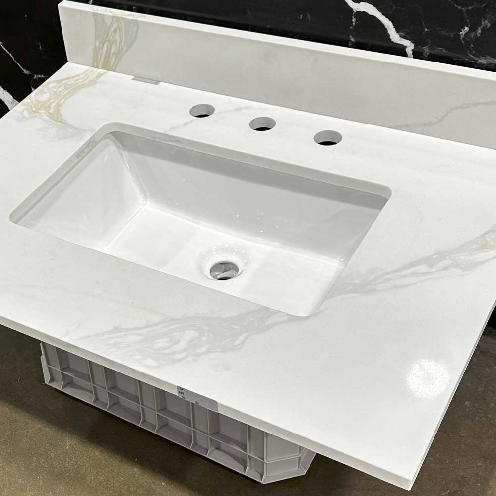 Cut to standard dimensions from our premium Greek quartz, our vanity tops are ready for your team to install. Saving you valuable time and fabrication costs with significant ease.